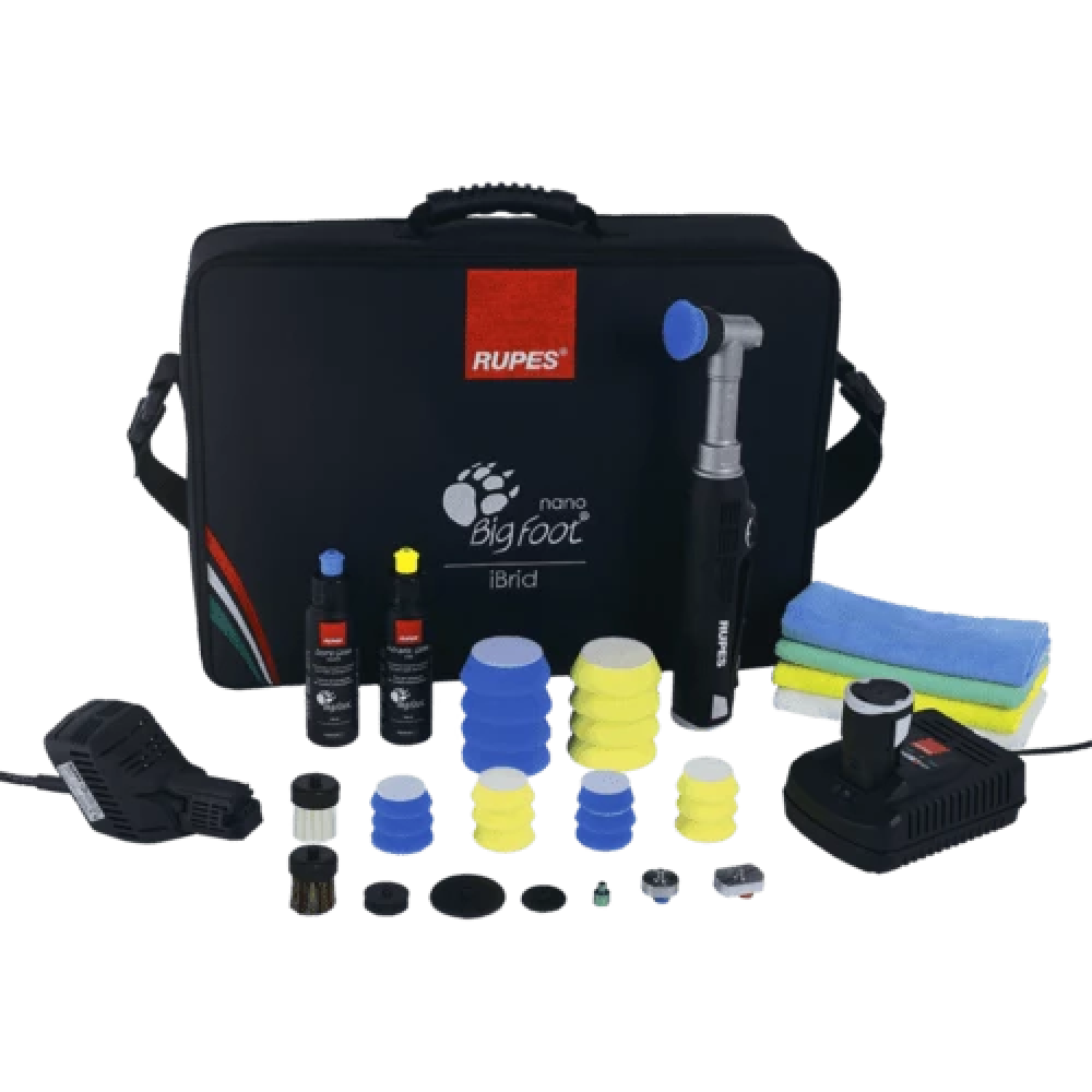 RUPES iBrid Nano – найуніверсальніший пристрій на ринку. Може працювати як від кабелю живлення, так і від акумуляторної батареї. За допомогою змінних насадок змінюється принцип полірування, на вибір три типи обертання: ексцентрик 3 мм, ексцентрик 12 мм та ротор. Типи обертань можна поєднувати з підошвами різного діаметра, на вибір 34 мм або 50 мм. Крім цього, в комплект входять щітки для очищення поверхонь: пластик, шкіра, алькантара, ковролін.
